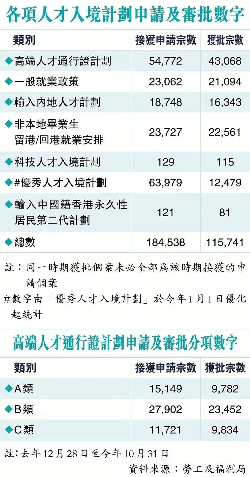 如上图,虽然高才通的获批宗数在各项人才入境计划占比最高(达到37.22%)。 但递交申请最热门的计划却是香港优才计划。各项人才入境计划收到18万宗申请,超过⅓是优才。 毕竟高才通的硬门槛摆在那。要么有合资格名校学士学位证明,要么有收入超过250万港元的证明,符合就是符合,不符合就是不符合。 优才计划的申请相对来说更有空间,满分245分,达到80分即可提交申请,给你机会向港府证明你的优秀。 所以大家都想着冲一把,特别是去年年底宣布2023-2024“无配额限制”之后,申请人更是一窝蜂涌上来。 10个月的时间,优才计划收到了63,979宗申请,接近去年全年的4倍! 不过也因为留的空间比较大,审核起来会比较费事:入境处收到申请进行一轮审核后,还要移交至“输入优秀人才及专才咨询委员会”做进一步评核,目前整个流程下来要6-9个月。 所以前10月,获批数仅12,479宗,但也是去年全年的4倍有余! 注意: 同一时期的获批个案未必全部为该时期的申请 统计期内未获批个案不等于被拒绝,大量申请仍在处理中 跟高才通一样,优才也是有明星“背书”的! 著名钢琴家郎朗就是“香港优才第一人”,2006年优才计划开启的第一时间,他就火速拿了签证,到香港入境处领取证件的时候被媒体团团包围。 著名演员汤唯也通过该计划拿到香港身份,并在2018年,C位出镜香港入境处推出的优才宣传片。 综合计分制:适用大部分优才,评核范畴包括:年龄、学历/专业资格、工作经验、语文能力、家庭背景,总分245分,达到80分即可递交申请。 成就计分制:适用于拥有超凡才能杰出成就的优秀人才(例如奥运奖牌、诺贝尔奖、国家/国际奖项得主),只要满足条件,就是直接245分。 优才申请飙升290%,目前最火! 从图中各项统计数据可以看出,目前香港优才计划申请人数是最多的。今年前10个月,入境处共收到了63979宗优才申请,而去年全年的优才申请量才为16396宗,由此粗略计算,今年前十个月优才申请量相比去年全年涨幅高达290%。可见,香港优才计划是目前最火的拿香港身份的方式。 现在申请优才是容易还是难了? 很多想要申请香港优才计划的朋友都会问小编,现在优才申请是什么情况?获批难不难?什么条件的会更容易获批呢? 全球百强名校毕业 高学历人才 从事香港热门或紧缺行业 在名企或是跨国公司就业 从事国际化工作优才的两套打分制度